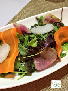 50 Mile Simple Salad, a fresh combination of leafy greens and shaved carrots drizzled in roasted shallot vinaigrette, and the